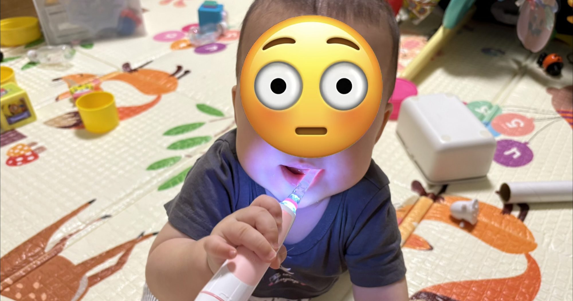 歯ブラシは嫌がる子が多いですが、これなら光と振動が面白くて平気なんだとか。